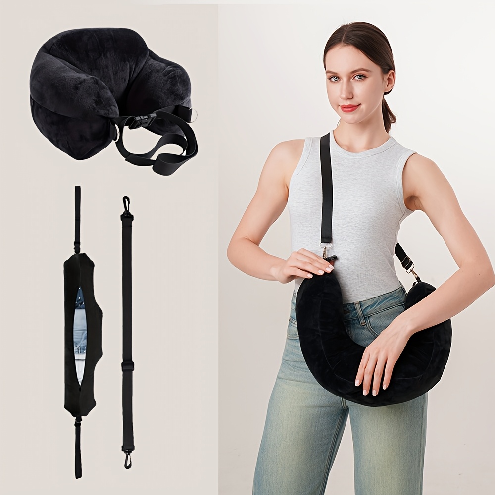 TEMU 옷을 채울 수 있는 U자형 커버가 있는 여행용 목베개. 조절 가능하고 휴대가 간편하며 부드러운 플러시 원단으로 제작, 3일 분량의 옷을 보관하기에 적합, 짧은 여행, 출장, 비행기, 자동차에 이상적
