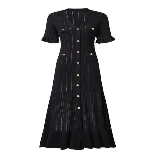 [GGPX]골지 브이넥 페이크 버튼 롱 원피스 (GPCOW023D)
