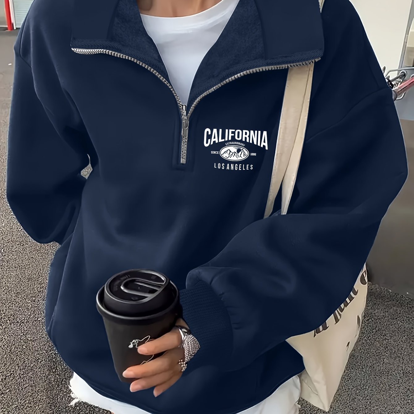 TEMU 세련된 영어 레터 프린트가 돋보이는 지퍼형 넥라인이 특징인 패셔너블한 여성용 스웨트셔츠. 캐주얼하고 트렌디한 출퇴근룩에 완벽합니다.