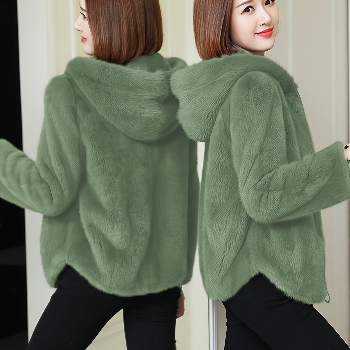 TEMU 집업 단색 테디 코트, 캐주얼 긴팔 겨울 아우터웨어, 여성 의류