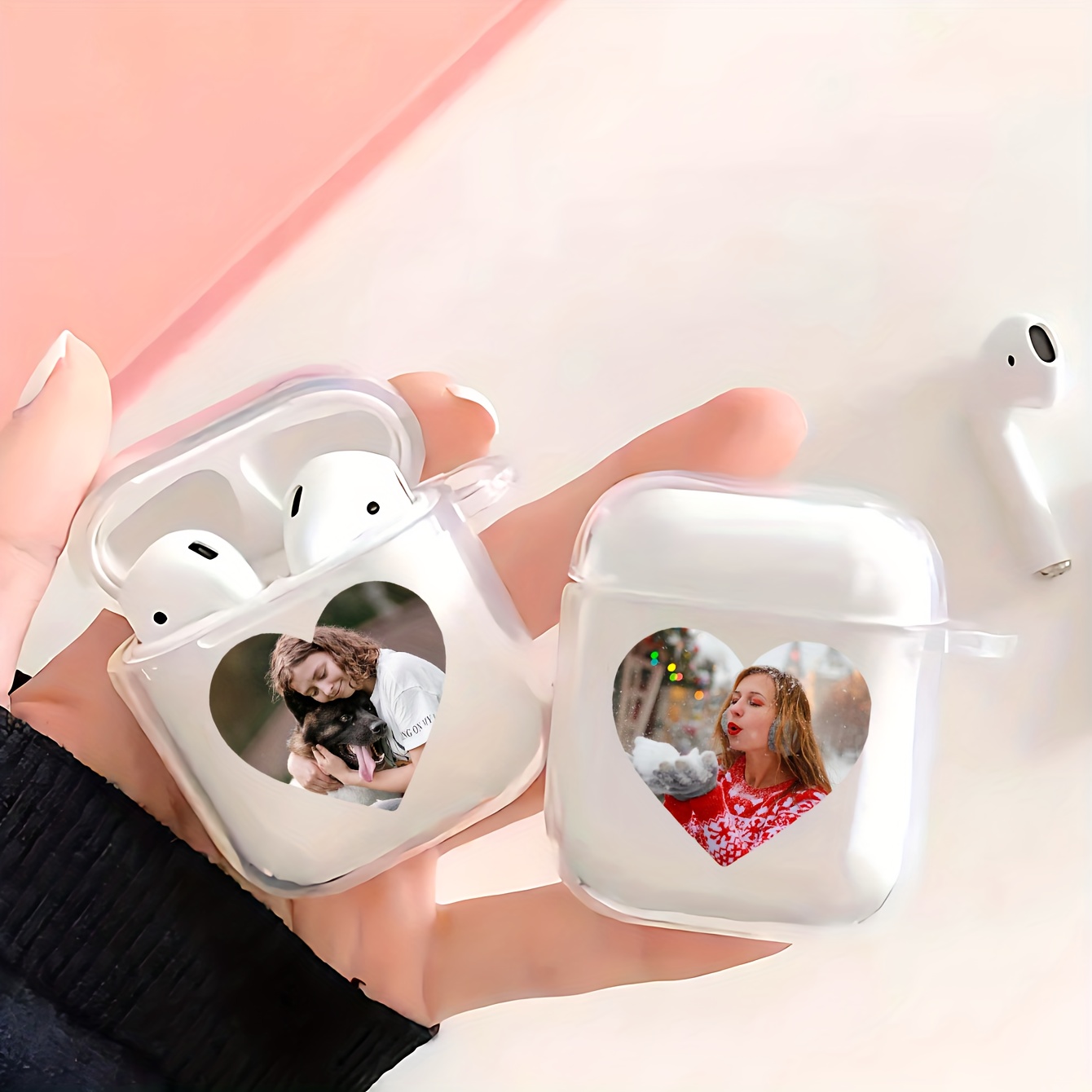 TEMU 개인 사진 디자인의 맞춤형 투명 이어폰 케이스, 귀여운 텍스트가 돋보이는 스타일리시한 TPU 소프트 이어폰 박스, DIY (DIY)로 연간 기념일 선물, Apple 이어폰 1/2/3/4/Pro/Pro2 호환. 패셔너블, , 카와이, 유니크