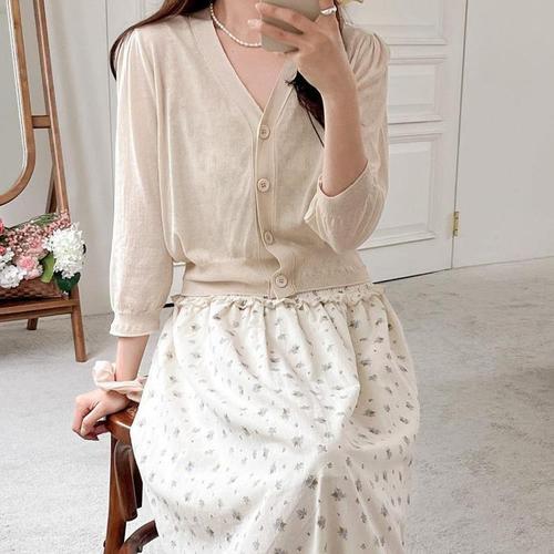 [다잇템]여자 SS 칠부 브이 잔주름 딥브이넥 가디건 (16331348A)