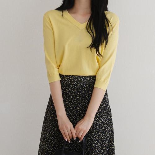 [다잇템]여자 칠부 SS 색상 컨템포러리 V넥 엷은 니트 (14401754A)