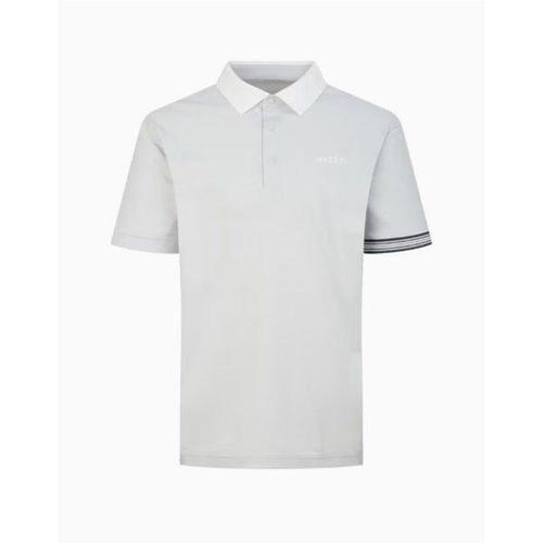 헤지스 골프 25SS ONLINE EXCLUSIVE그레이 남성 소매배색 반팔 카라 티셔츠 HUTS5B905G1