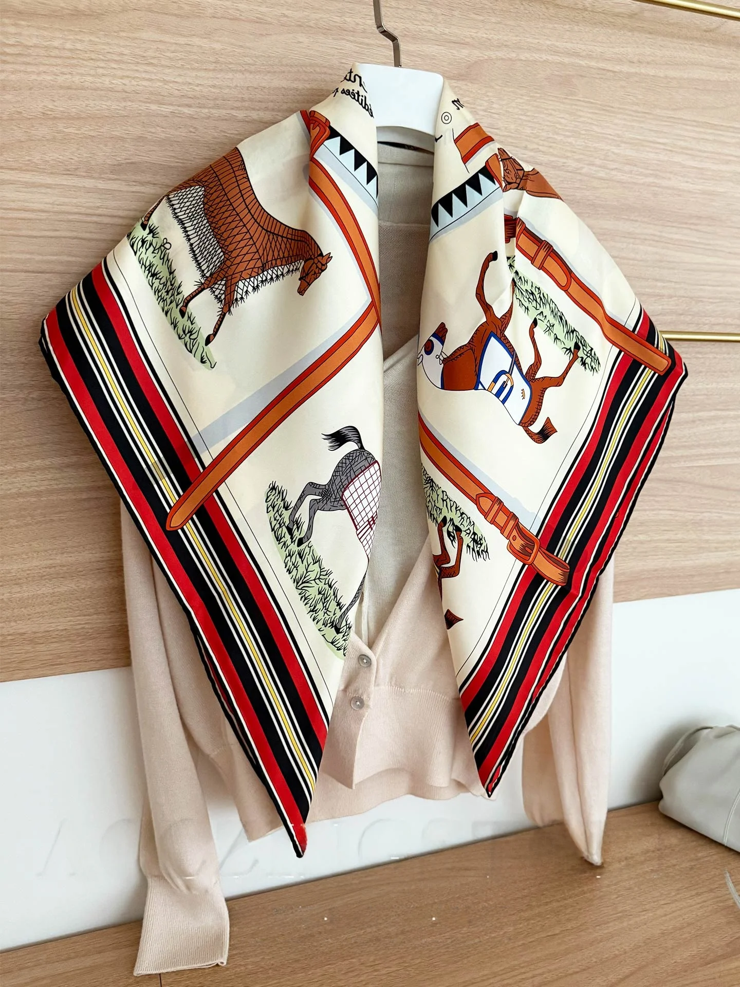 보헤미안 스타일 프린트 럭셔리 브랜드 실크 스퀘어 스카프, 새틴 숄, 네커치프 랩 스카프, 반다나 헤어, 지아브 꽃