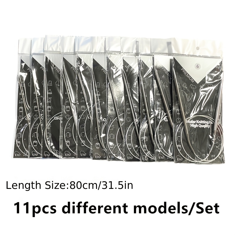 TEMU 11개입 스테인리스 스틸 원형 뜨개질 바늘 세트 (스웨터, 모자, 스카프용)