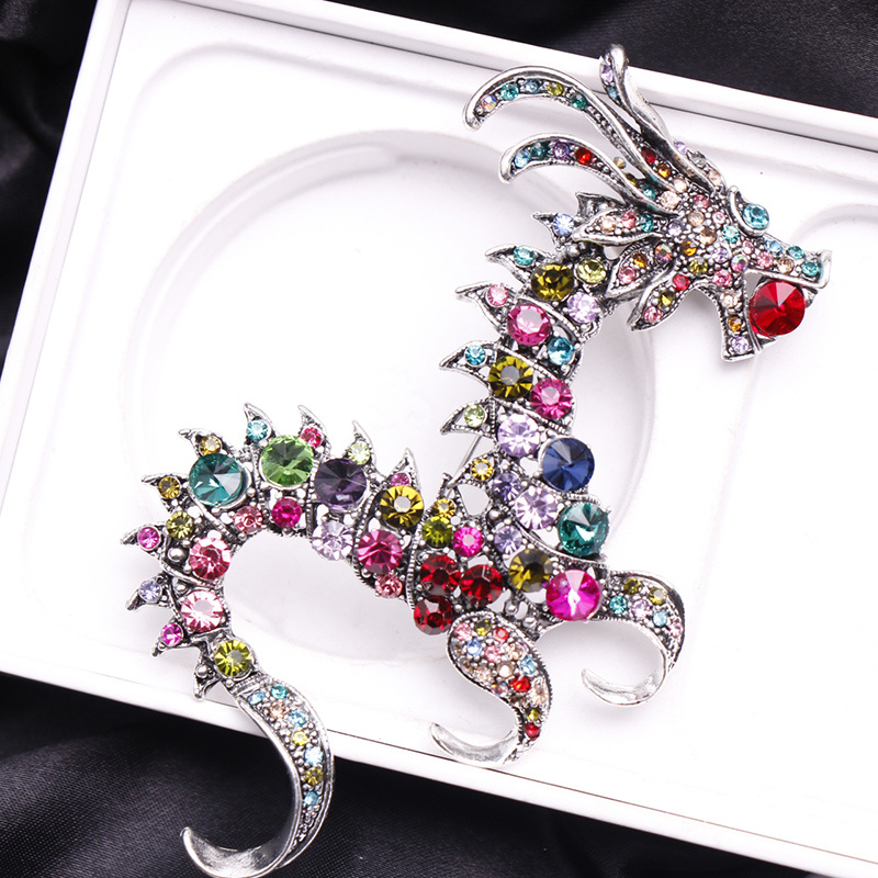 TEMU 화려한 빈티지 드래곤 브로치와 컬러풀한 라인스톤 - 아연 합금, 남성용 독특한 동물 테마 액세서리