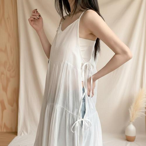[옷자락] 여성 루즈핏 시스루 스트랩 나시 캉캉 사이드 리본 드레스