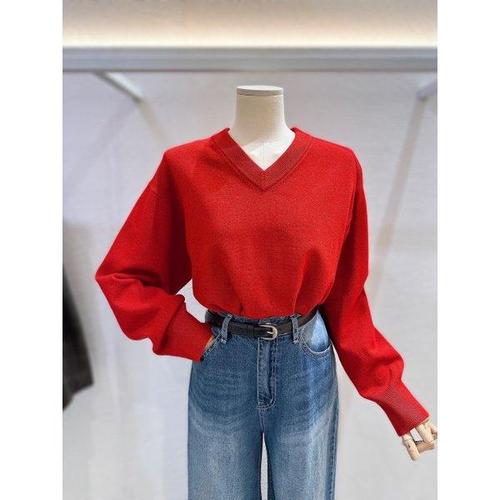 선빛 여성용 간절기 V넥 데일리 무지 바이엣 니트