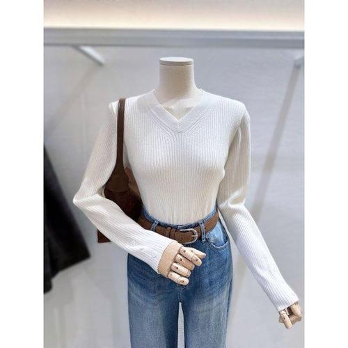 갤러리아_[LAP]브이넥 소매단추 슬림니트 (AR4KHA61)