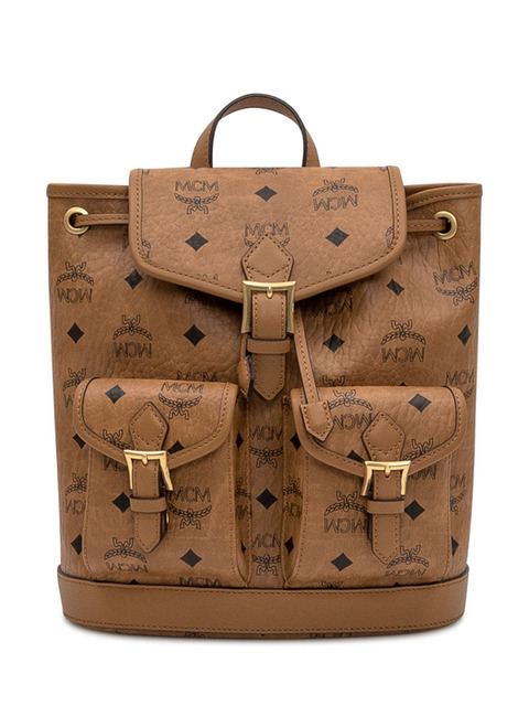 우먼 MCM 스몰 Aren 드로스트링 백팩 인 비세토스 브라운 11198559