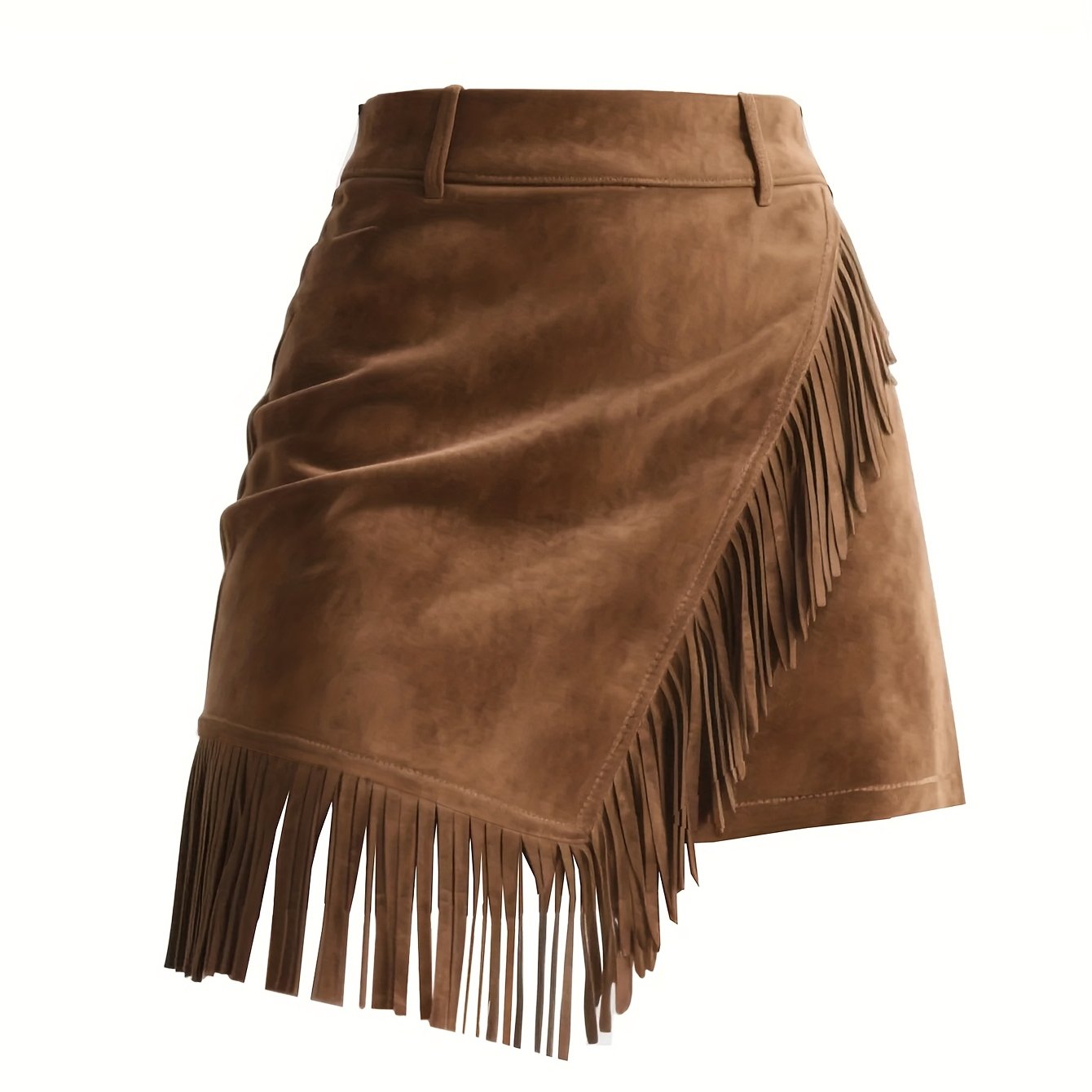 TEMU 우아한 여성용 인조 스웨이드 프린지 미니 스커트
