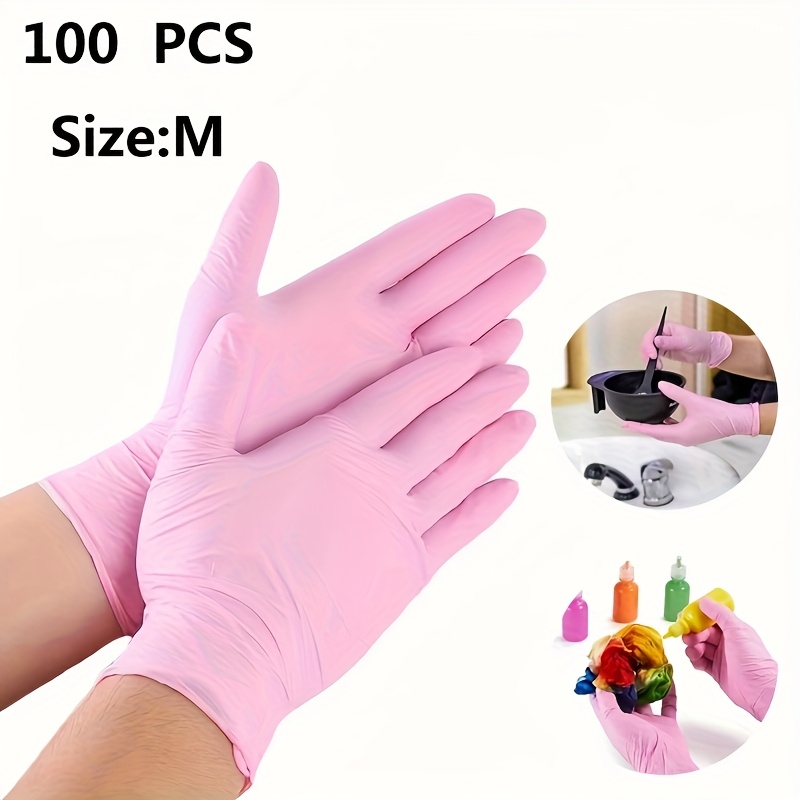 TEMU 100개 핑크 니트릴 장갑 - 가정, 욕실, 네일 아트, 청소에 적합한 일회용 장갑 - 남녀 모두에게 적합, 다기능, 착용 및 제거 용이, 편안하고 착용감 좋음, 재사용 가능