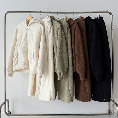 [옷자락]여성 겨울 양털 후드집업 와이드팬츠 세트