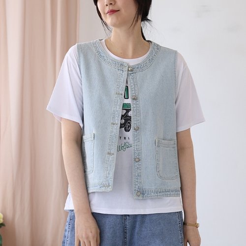 [SATIN] 클래식 워싱 데님 베스트 O262T151