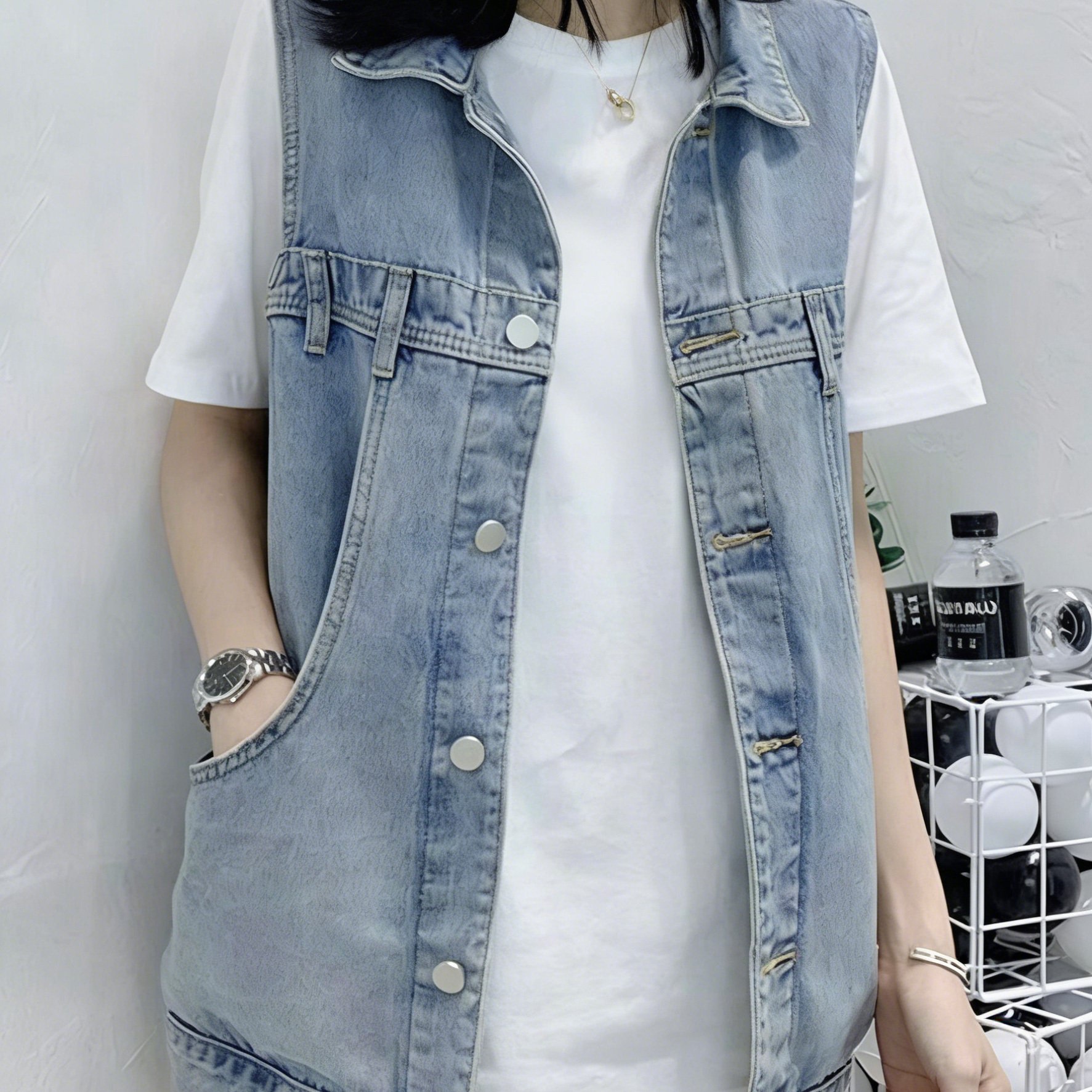 멋스러운 아우터 데님조끼 여성 빈티지한 분위기