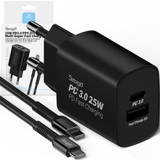 서가 C타입 초고속 충전기 25W PD3.0 PPS 2포트 멀티 + 메탈 고강도 CtoC 케이블 1.5m 60W, 블랙, 1개