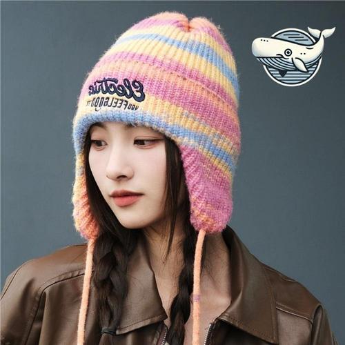 레이보우 귀달이 니트비니 겨울 모자 4컬러 WFFPQXZ