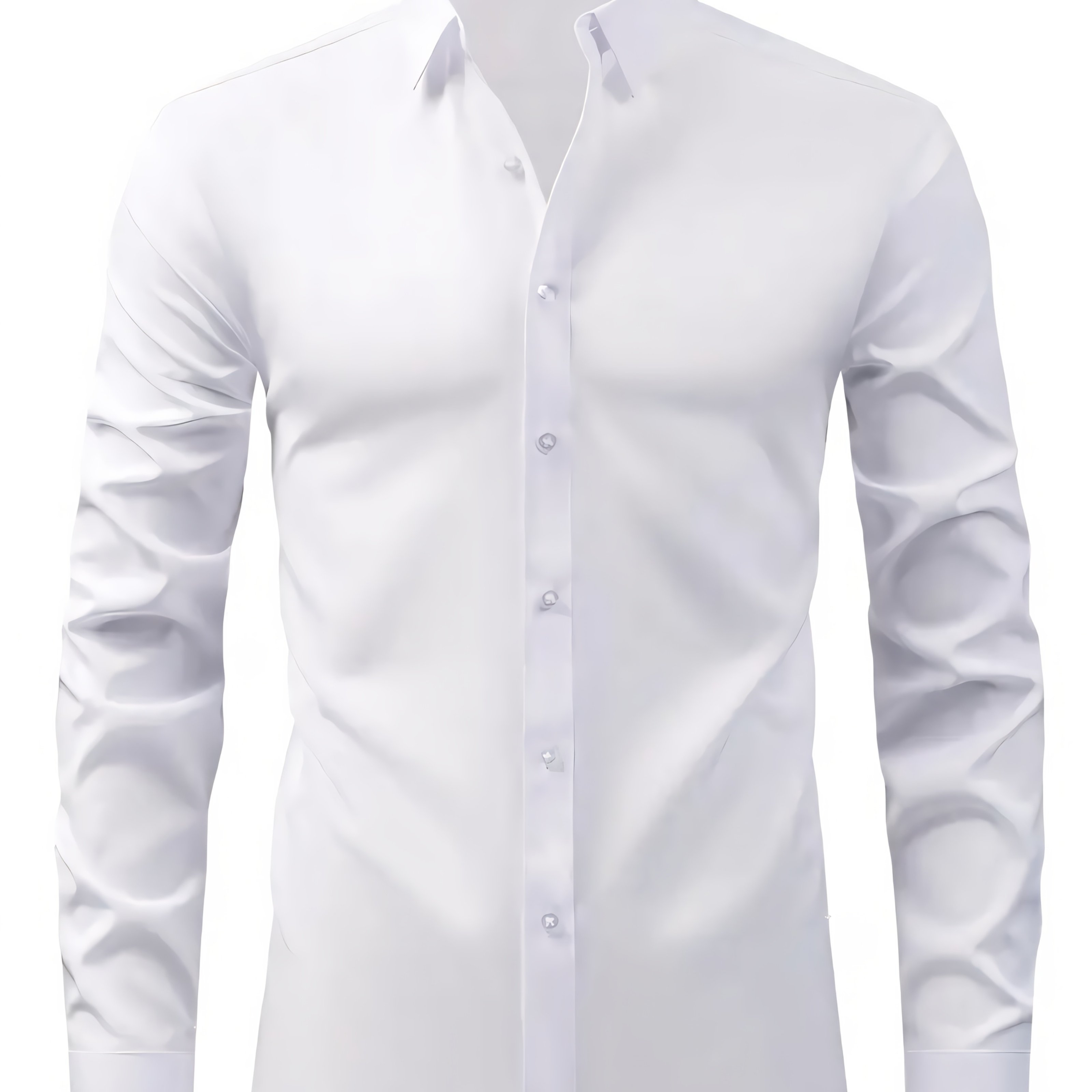 TEMU 남성용 우아한 긴팔 버튼업 셔츠 - 부드럽고 약간의 신축성이 있는 캐주얼 원단으로 제작되었으며, 야외 비즈니스 및 봄, 가을 시즌에 적합합니다.