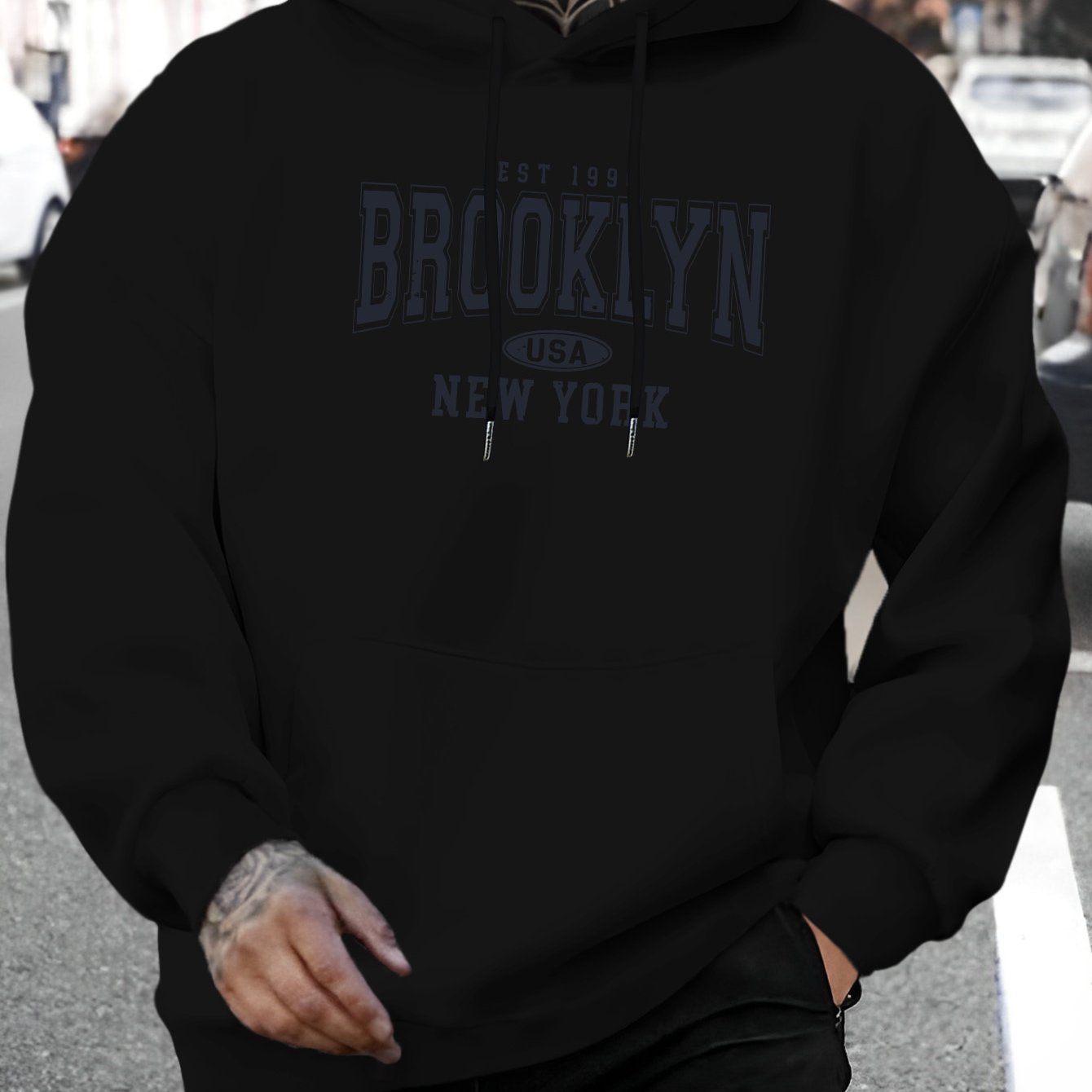 TEMU 남성용 브루클린 레터 프린트 후드 스웨트셔츠 - 캐주얼 풀오버 후드 스웨터, 가을 & 겨울용 따뜻한 겨울 스웨터, 레귤러 핏 긴팔 스웨터, 도시 스트리트웨어 또는 오피스 캐주얼을 위한 다용도 레이어링 아이템 (브루클린 테마)