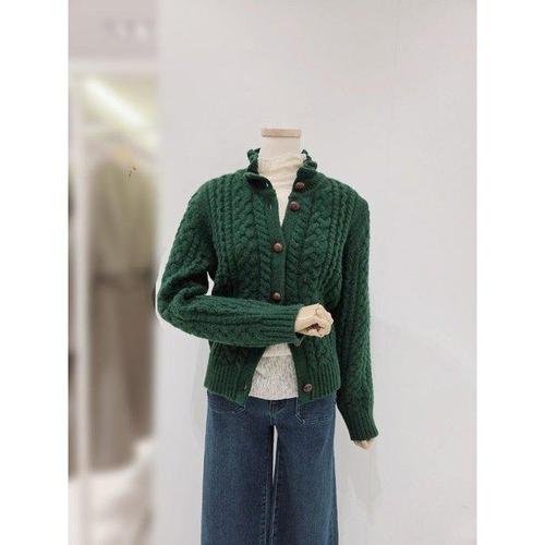 갤러리아_[SOUP] 프릴넥 우드 버튼 케이블 가디건 SBAGD82
