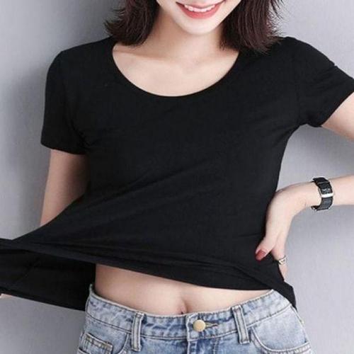 슬림핏 U넥 버튼 반팔티 데일리 섹시 여친룩 크롭탑 WFL0HDJ