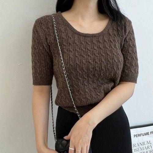 [다잇템]여성 피셔맨 반소매 베이직 부드러운 U넥 니트