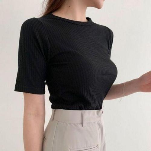 [에이치플러스몰]여성 여름 데일리 골지 U넥 클래식 기본 티셔츠 반팔