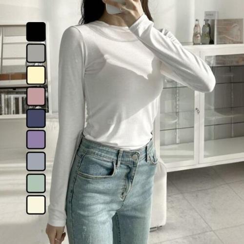 손등덮는 여리핏 코튼 유넥 기본무지 긴팔티셔츠 3color