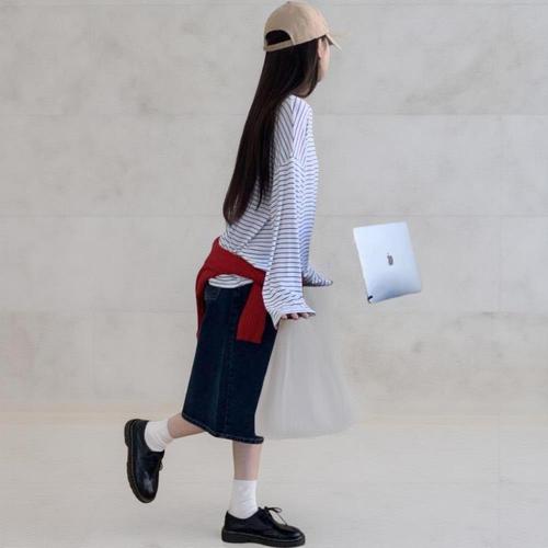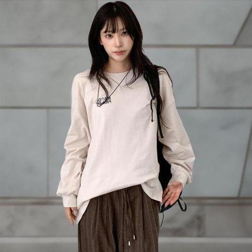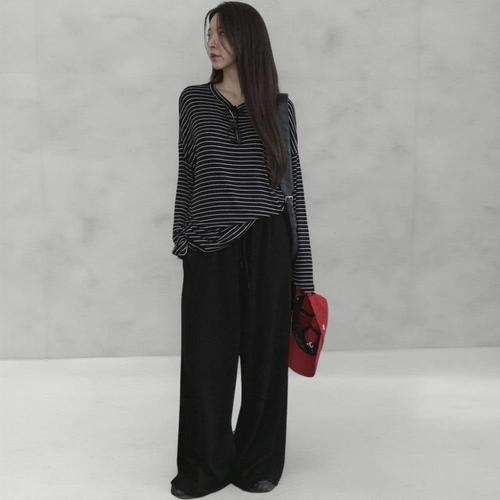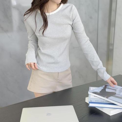 [다잇템]여성 롱슬리브 U넥 단가라 편한 미세 티셔츠