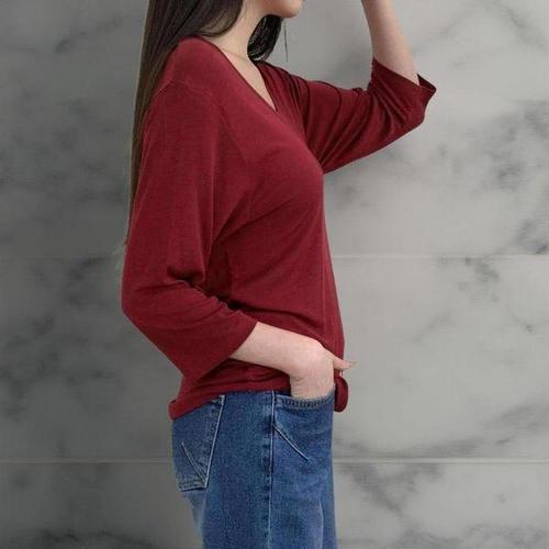 [다잇템]여성 8부 미니멀리즘 U넥 다채로운 편한 티셔츠
