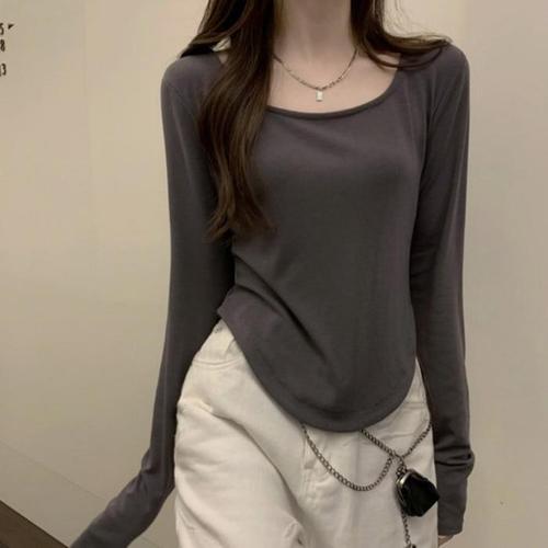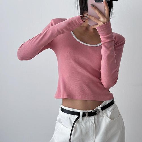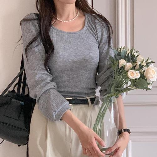 [다잇템]여자 U넥 부드러운 롱슬리브 슬림 티셔츠 (18993955A)