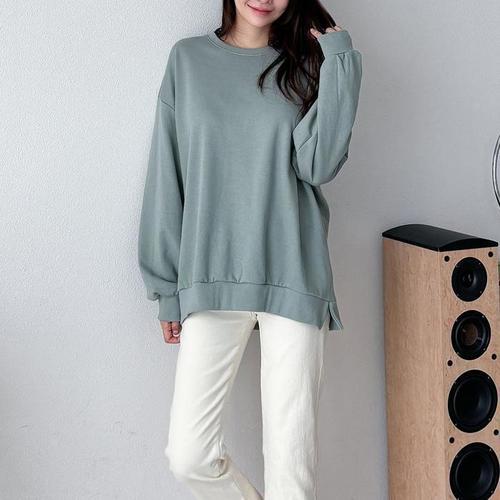 [다잇템]여자 밑단트임 민무늬 U넥 미니멀리즘 티셔츠 (18925365A)