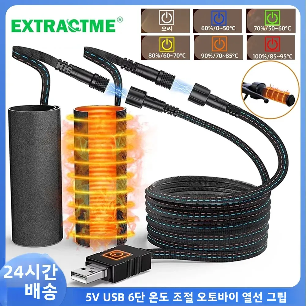 Extractme 오토바이 히팅 핸드그립 5V USB 6단계 온열 전기 핸드그립 커버 진동 방지 미끄럼 방지 빠른 가열 키트