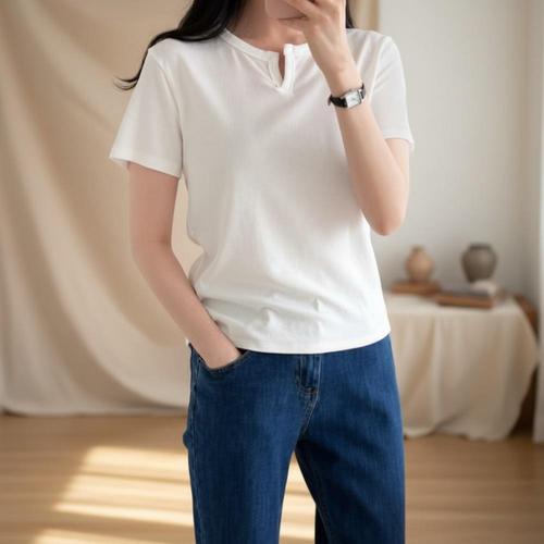 피부에 닿는 부드러운 V넥반팔티, 하루 종일 편안하게 입어보세요.