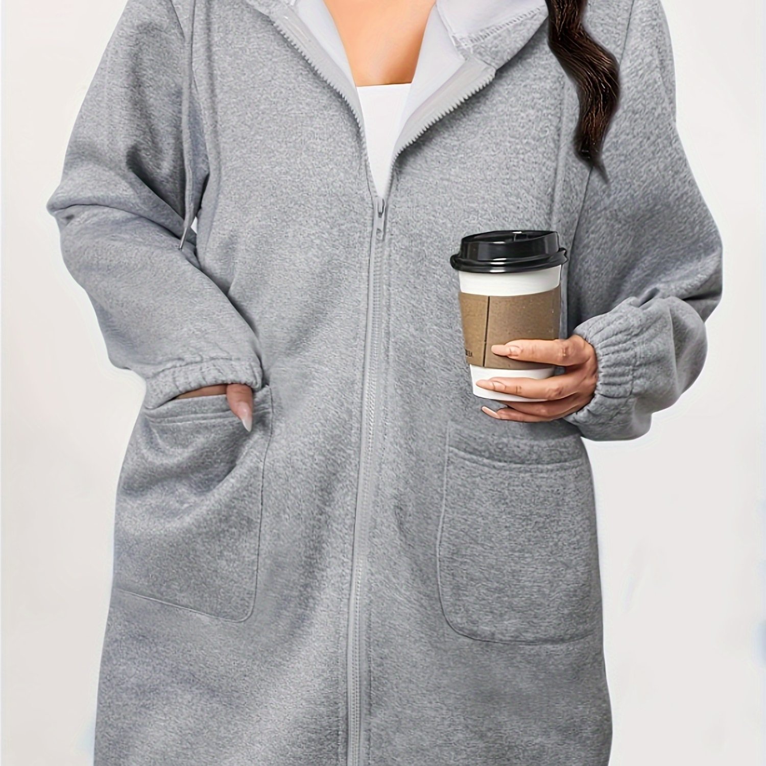 TEMU 세련되고 편안하며 다재다능한 솔리드 컬러 여성용 가디건, 후드 및 지퍼 포켓 포함.