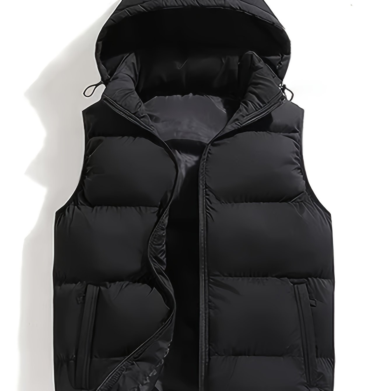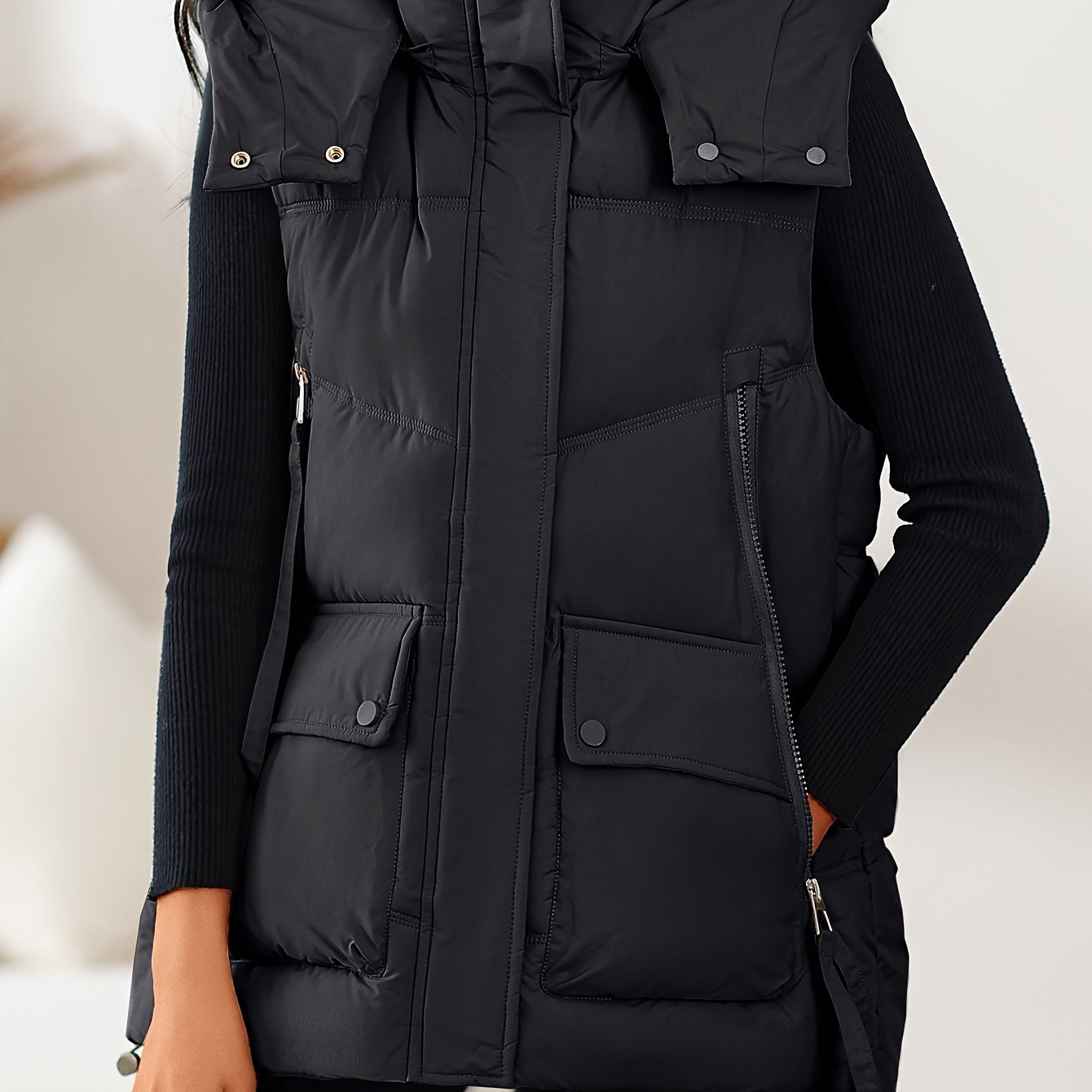 TEMU 여성용 우아한 후드 베스트 - 조절 가능한 드로스트링 후드, 중간 길이 퍼퍼 재킷, 기계 세탁 가능 솔리드 컬러 다목적 아우터웨어, 캐주얼 & 포멀 룩, 슬림 디자인, 내구성 있는 소재, 오피스 웨어