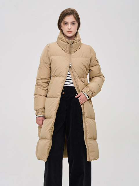 [에스제이와이피] (PW2EAQOT005WBG) 슬림 니트 넥 롱 다운 점퍼