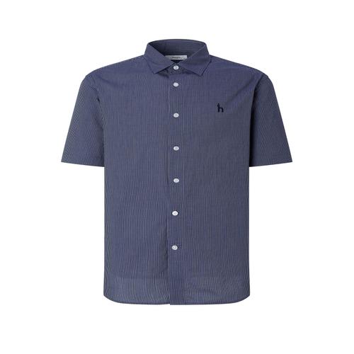 헤지스 남성 [스테디셀러] 네이비 스트라이프 면 반팔캐주얼셔츠 (WHSH5B513N2)