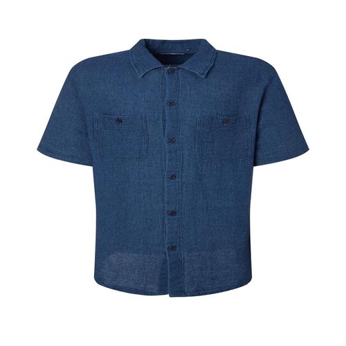 헤지스 남성 네이비 버튼다운 린넨 반팔캐주얼셔츠 (WHSH5B502N2)