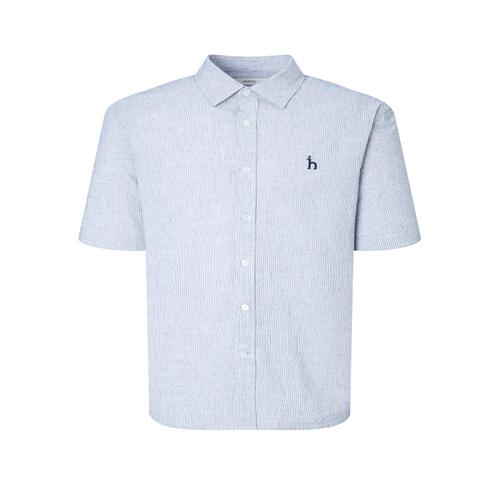 헤지스 남성 [스테디셀러] 네이비 스트라이프 면혼방 반팔캐주얼셔츠 (WHSH5B595N2)