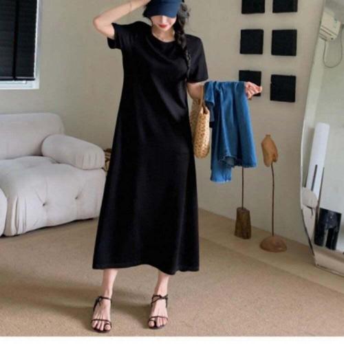 [오너클랜]인기상품 블랙 X끈 반팔 롱 원피스 플레어 여름 데일리 캐주얼 드레스 [WFLLRFA_260305]