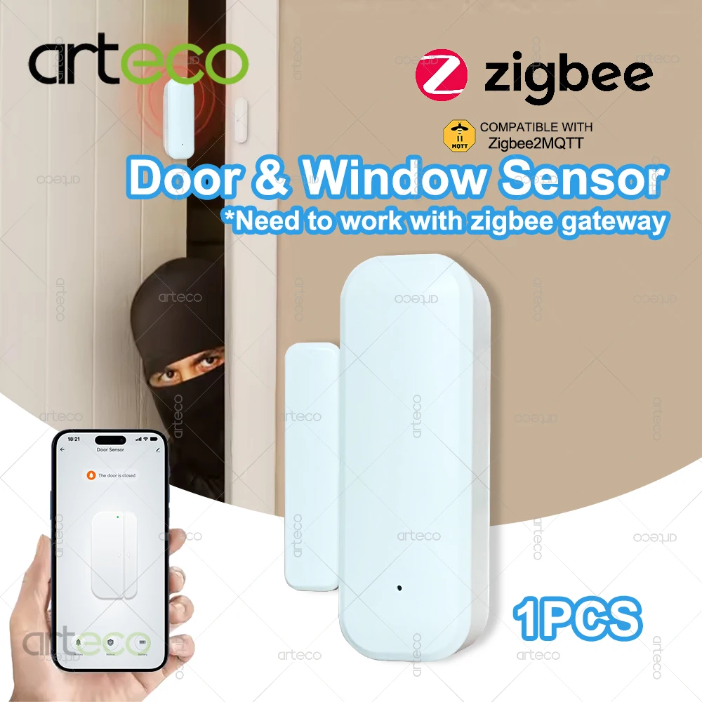 Zigbee 창문 센서 스마트 홈 보안 알람 창 센서 도어 열림/닫힘 접촉 감지기 원격 모니터 지원 Z2M